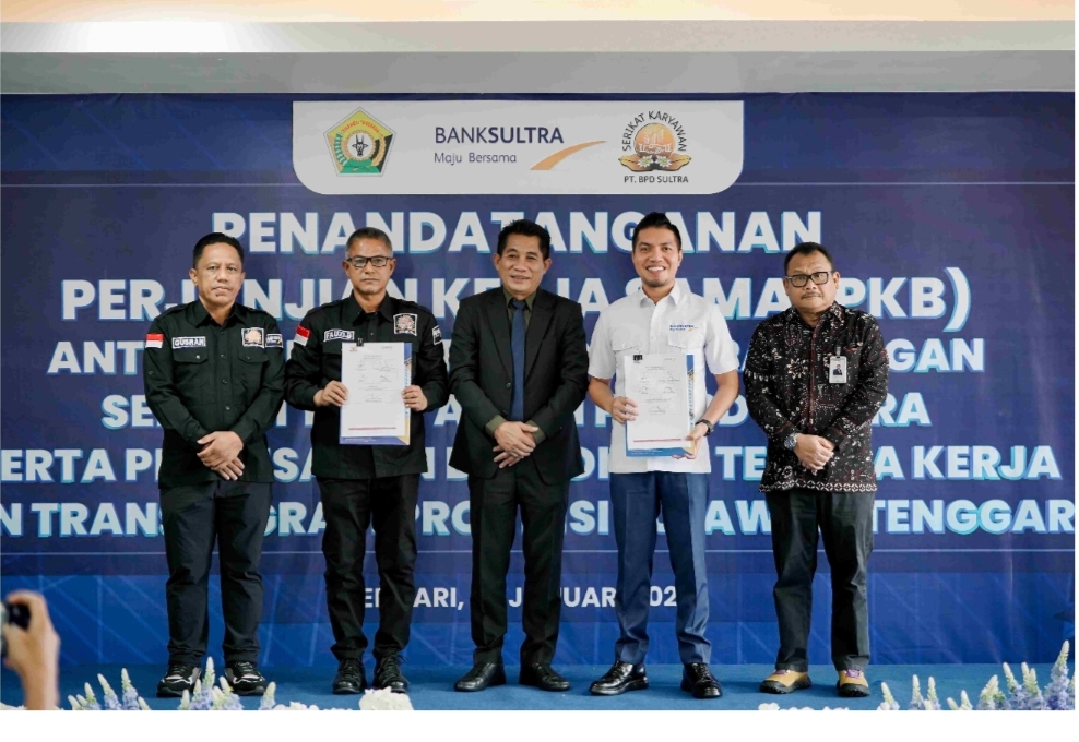 Manajemen Bank Sultra bersama Serikat Karyawan (Sekar) Bank Sultra secara resmi melakukan penandatanganan Perjanjian Kerja Bersama (PKB) pada hari Selasa, 20 Januari 2026 bertempat di Gedung Tower Bank Sultra.