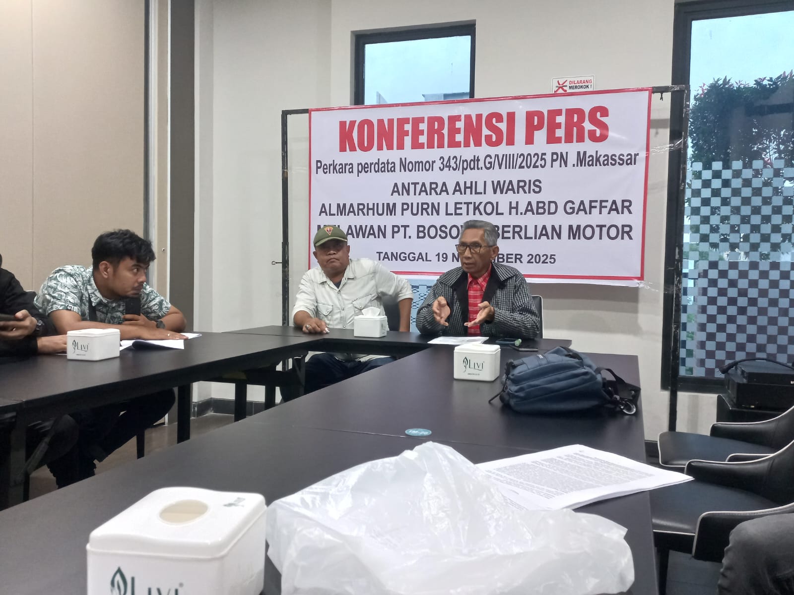 Kumbanews.com – Sengketa lahan antara PT Bosowa Berlian Motor dan ahli waris almarhum Letkol Purn. H. Abdul Gaffar di Kelurahan Maccini Sombala kembali memanas. Ahli waris membantah pemberitaan Harian Tribun (18/11/2025) yang menyebut tanah Bosowa dicaplok oleh Eddy Salim. Mereka menegaskan informasi itu tidak benar, Rabu (19/11/2025).