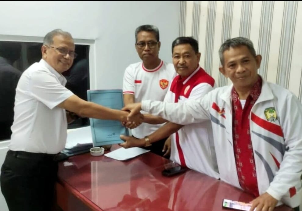 Arifuddin Saeni menyerahkan formulir pendaftaran calon Ketua KONI Gowa, didampingi tim penjaringan. (Foto: Istimewa)