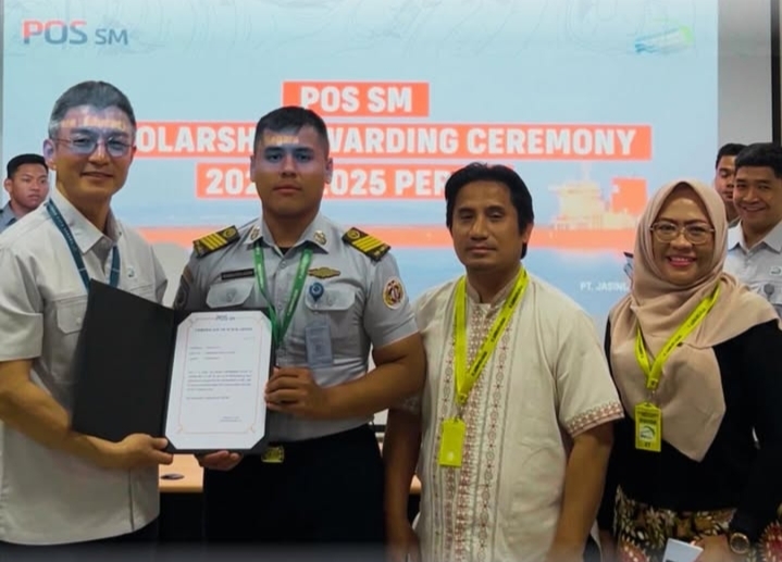 Kumbanews.com – Cadet Politeknik Ilmu Pelayaran (PIP) Makassar, Muhammad Ayyubi Al Ghifari (Teknika VII/E), secara resmi menerima full scholarship dari Pos SM South Korea Shipping Company. Penyerahan beasiswa berlangsung di Kantor Jasindo, Jakarta, Rabu, 13 Januari 2026.