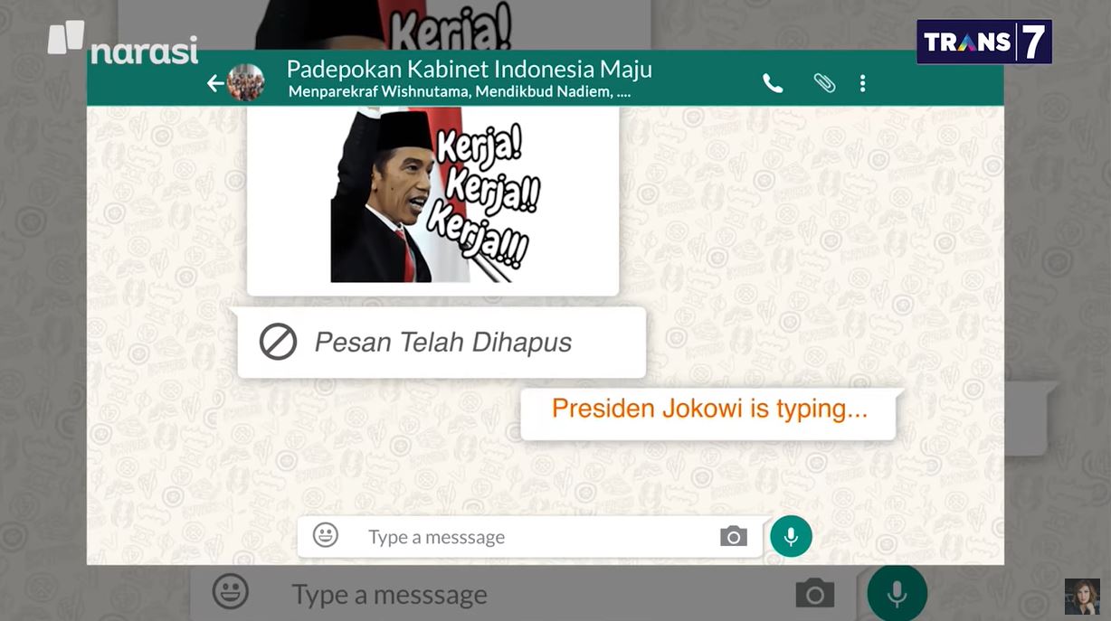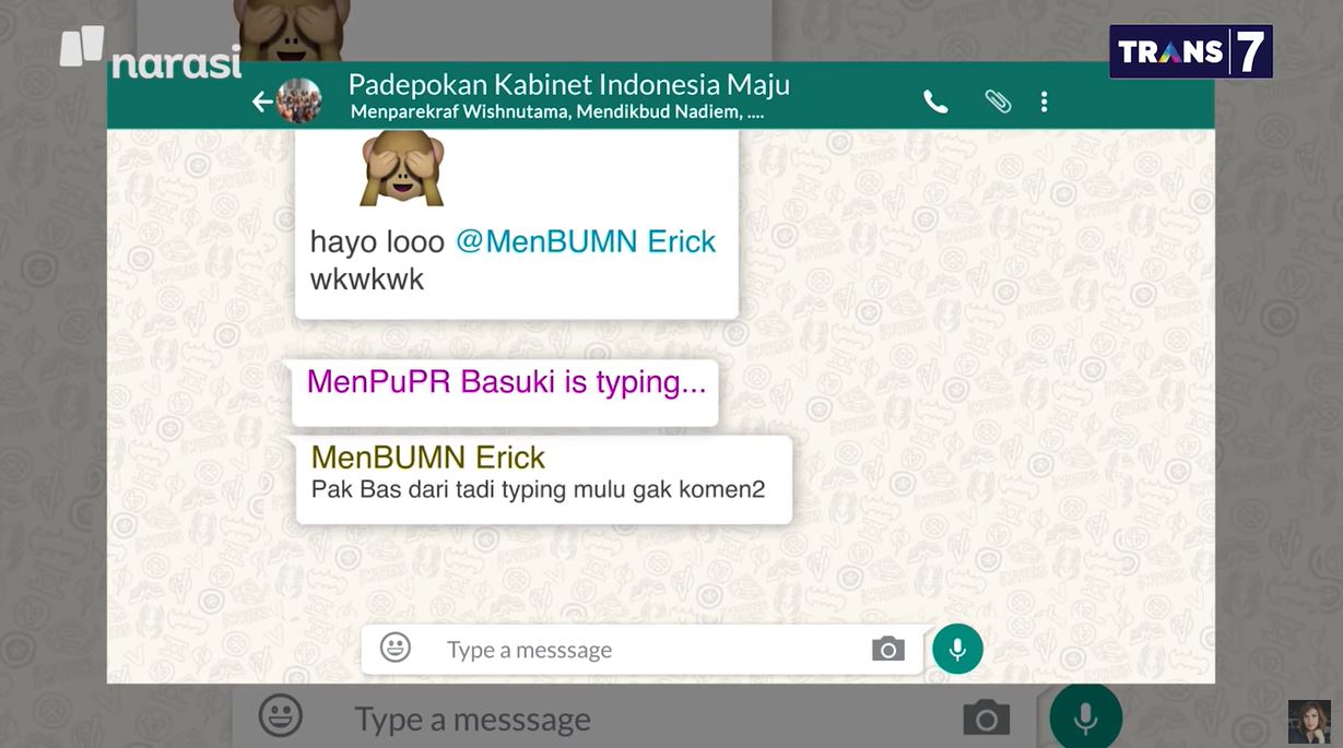 Satu di antaranya, apakah para menteri ini memiliki grup percakapan di WhatsApp (WA) sebagaimana para menteri terdahulu?