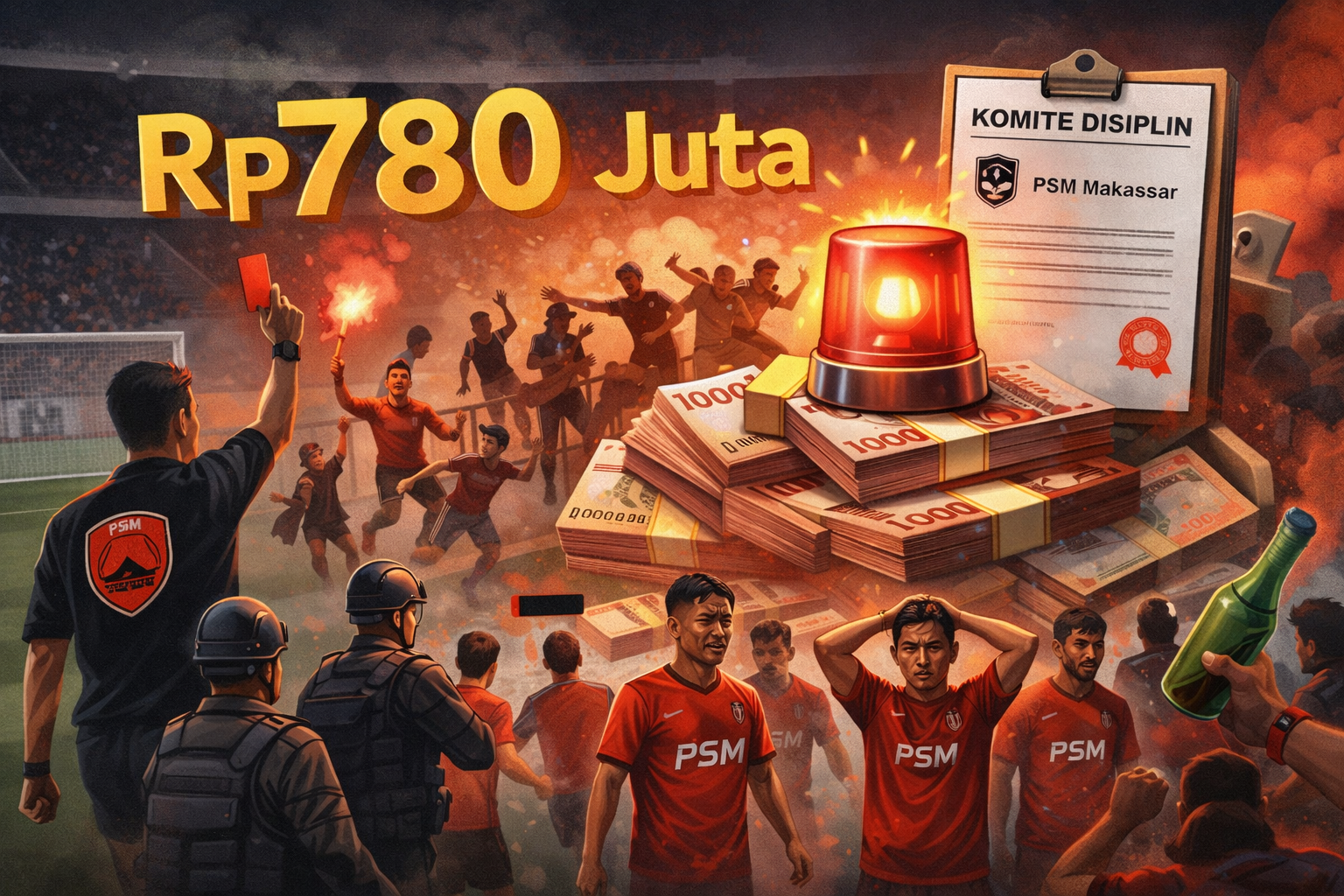 Kumbanews.com – Klub sepak bola PSM Makassar tercatat harus membayar denda hingga Rp780 juta sepanjang kompetisi Super League Indonesia musim 2025/2026.