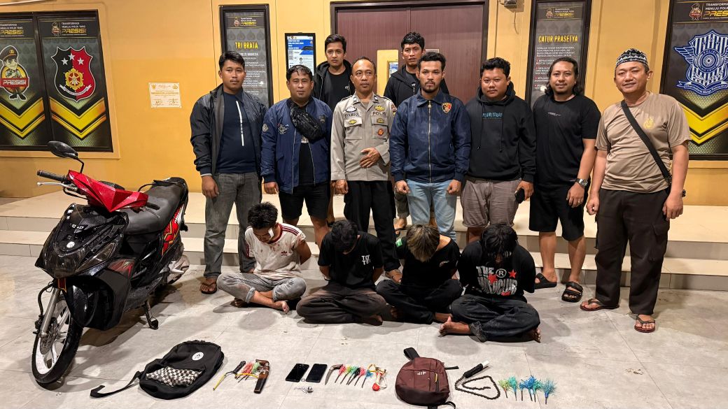 “Hasil pemeriksaan menemukan sejumlah senjata tajam, baik yang diselipkan di tubuh pelaku maupun disimpan dalam bagasi motor. Semua barang bukti langsung diamankan bersama pelaku,” ujar IPTU Ridwan.