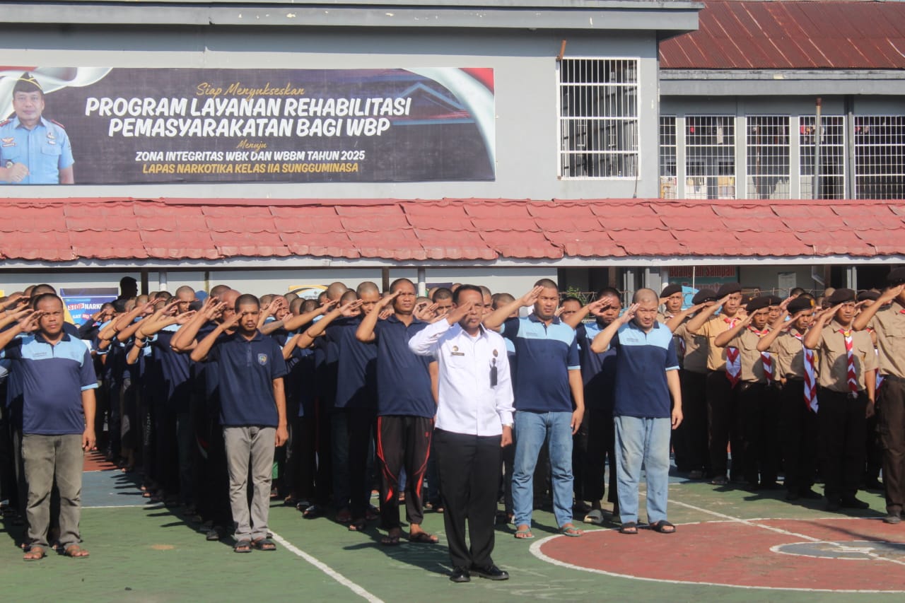 Kumbanews.com – Lembaga Pemasyarakatan (Lapas) Narkotika Kelas IIA Sungguminasa menyelenggarakan Upacara Peringatan Hari Kesaktian Pancasila Tahun 2025 pada Rabu (1/10/2025) di lapangan utama Lapas. Kegiatan berlangsung khidmat dan diikuti oleh seluruh jajaran pegawai, mahasiswa PKL dari Universitas Hasanuddin, mahasiswa PPL dari UIN Alauddin Makassar, serta Warga Binaan Pemasyarakatan (WBP).