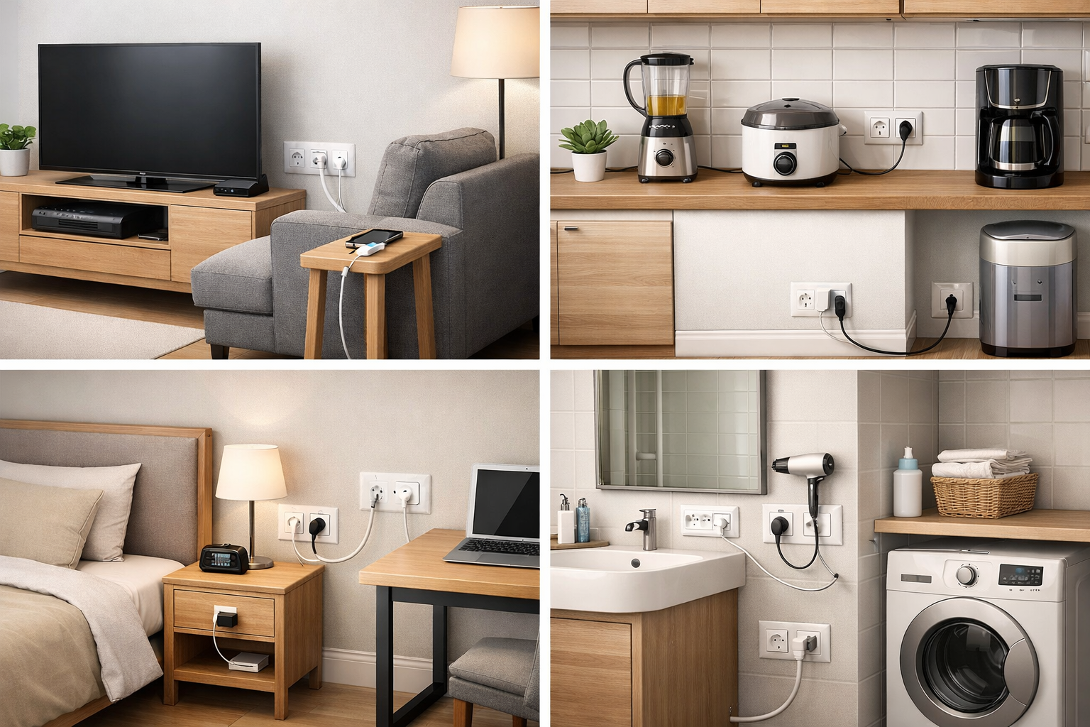 Untuk kamar mandi dan area cuci, keamanan menjadi prioritas utama. Gunakan stop kontak dengan pelindung tahan air (minimal standar IP44) dan tempatkan jauh dari sumber air.