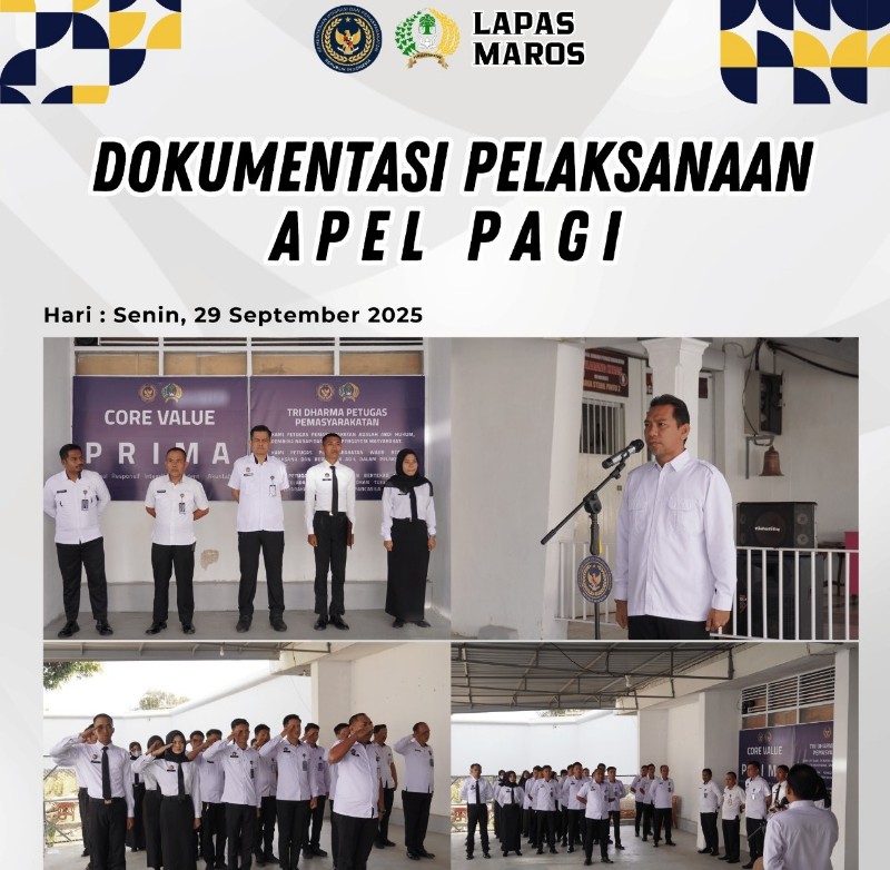 Kumbanews.com – Kepala Lembaga Pemasyarakatan (Kalapas) Kelas IIB Maros, Ali Imran, memimpin langsung pelaksanaan apel pagi petugas pada Senin (29/9). Kegiatan rutin tersebut diikuti oleh seluruh pejabat struktural, dan staf. Apel pagi dimanfaatkan sebagai sarana pembinaan kedisiplinan sekaligus penyampaian arahan penting kepada petugas.