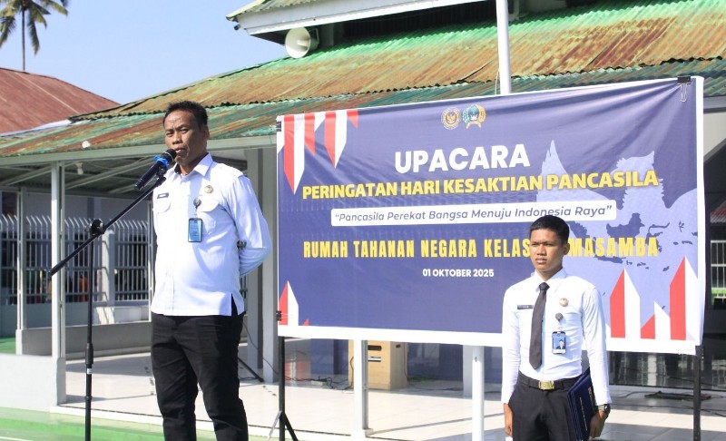 Kumbanews.com – Kepala Rumah Tahanan Negara (Rutan) Kelas IIB Masamba, Syamsul Bahri pimpin upacara peringatan Hari Kesaktian Pancasila yang berlangsung di halaman Dalam Rutan Masamba. Upacara tersebut diikuti oleh seluruh pegawai dan staf sebagai wujud penghormatan terhadap nilai-nilai luhur Pancasila sebagai dasar dan jiwa bangsa Indonesia. (01/10/2025).