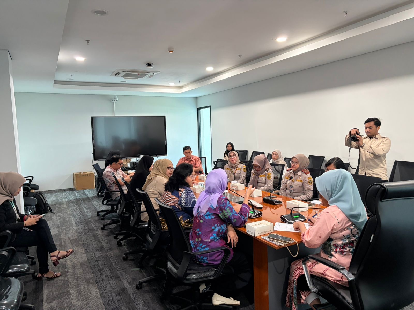 Pertemuan berlangsung interaktif dengan berbagai pertukaran gagasan terkait strategi komunikasi, edukasi publik, hingga penguatan koordinasi lintas sektor.