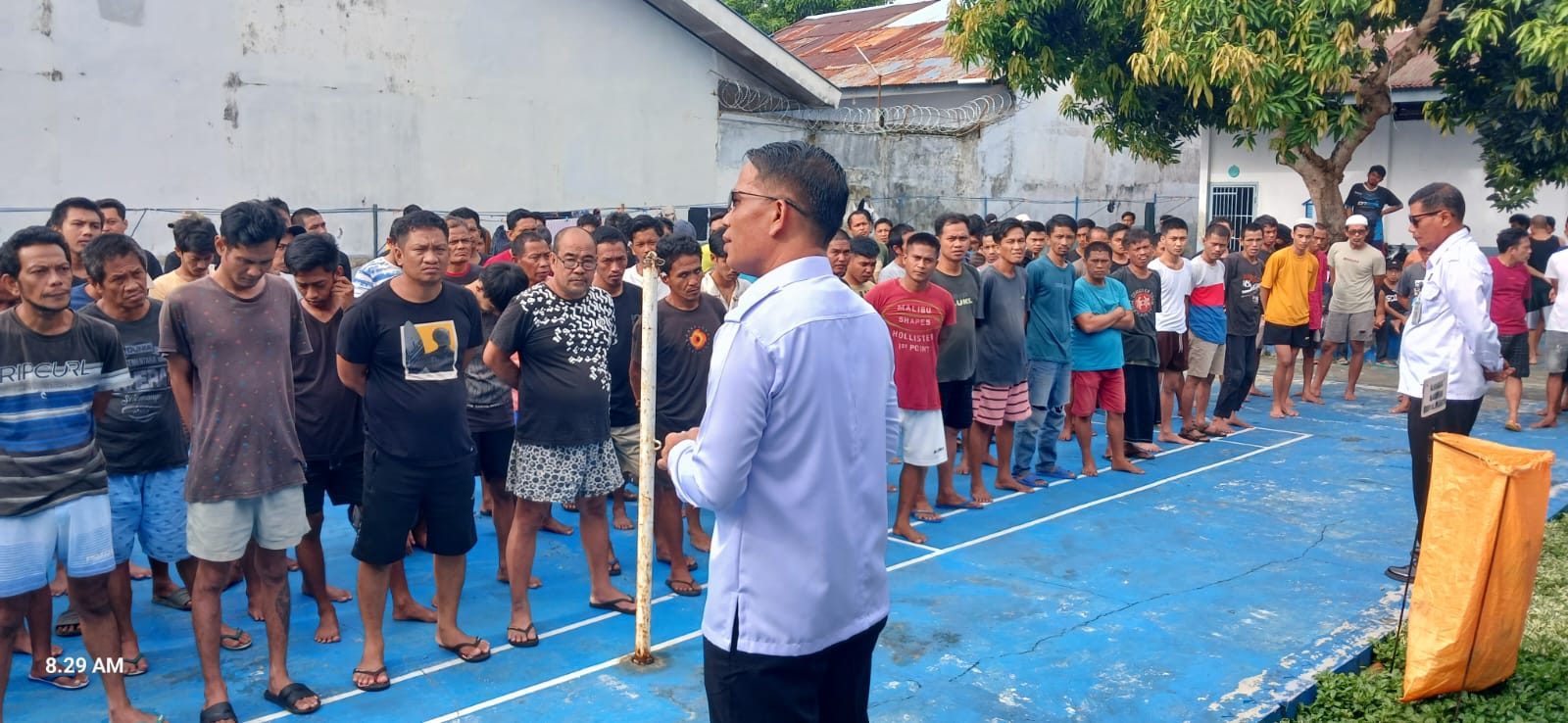 Menyapa WBP dengan senyum dan perhatian, Hartono bersama tim KPLP Palopo menunjukkan kepedulian nyata, membangun hubungan yang hangat sekaligus mendukung proses pembinaan di Lapas. ( Foto: Dokumentasi Humas Lapas Palopo)