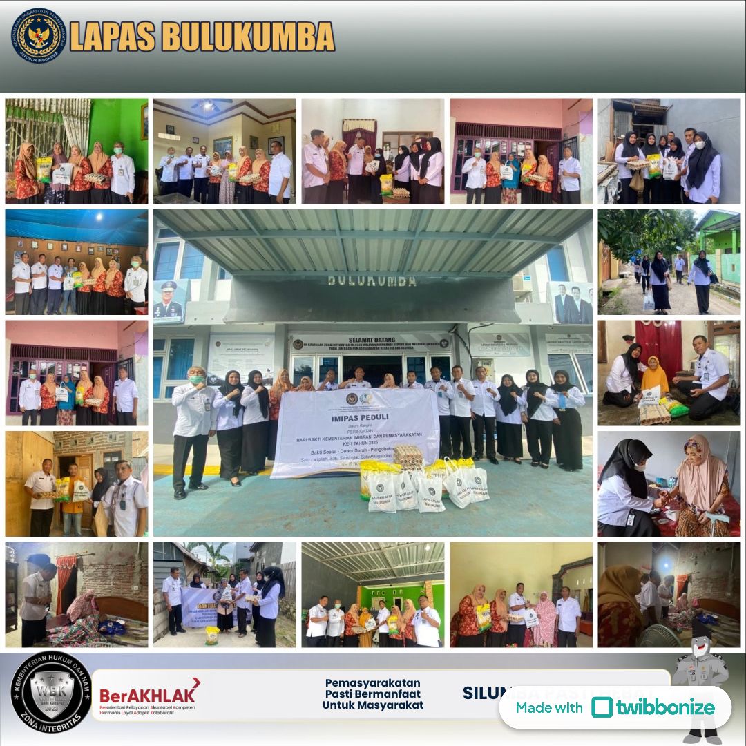 Seluruh rangkaian kegiatan berjalan tertib, aman, dan lancar, sukses memberikan dampak positif dalam memperkuat citra Pemasyarakatan sebagai institusi yang humanis dan peduli. Lapas Kelas IIA Bulukumba berkomitmen untuk menjadikan “Imipas Peduli” sebagai agenda tahunan yang berkelanjutan. Kami mengajak seluruh pihak, instansi, dan mitra kerja untuk bersinergi dan berkolaborasi dalam memperluas jangkauan dan kualitas program bantuan sosial ini.