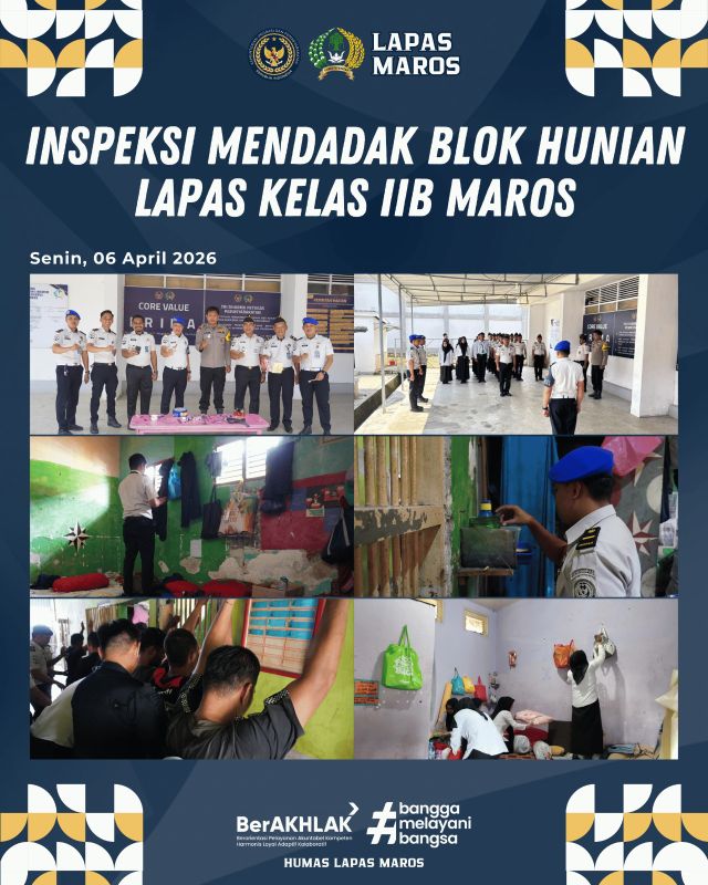Kumbanews.com – Lapas Kelas IIB Maros menggelar inspeksi mendadak (sidak) gabungan bersama aparat penegak hukum (APH) untuk memperkuat keamanan dan ketertiban, Senin (6/4/2026).