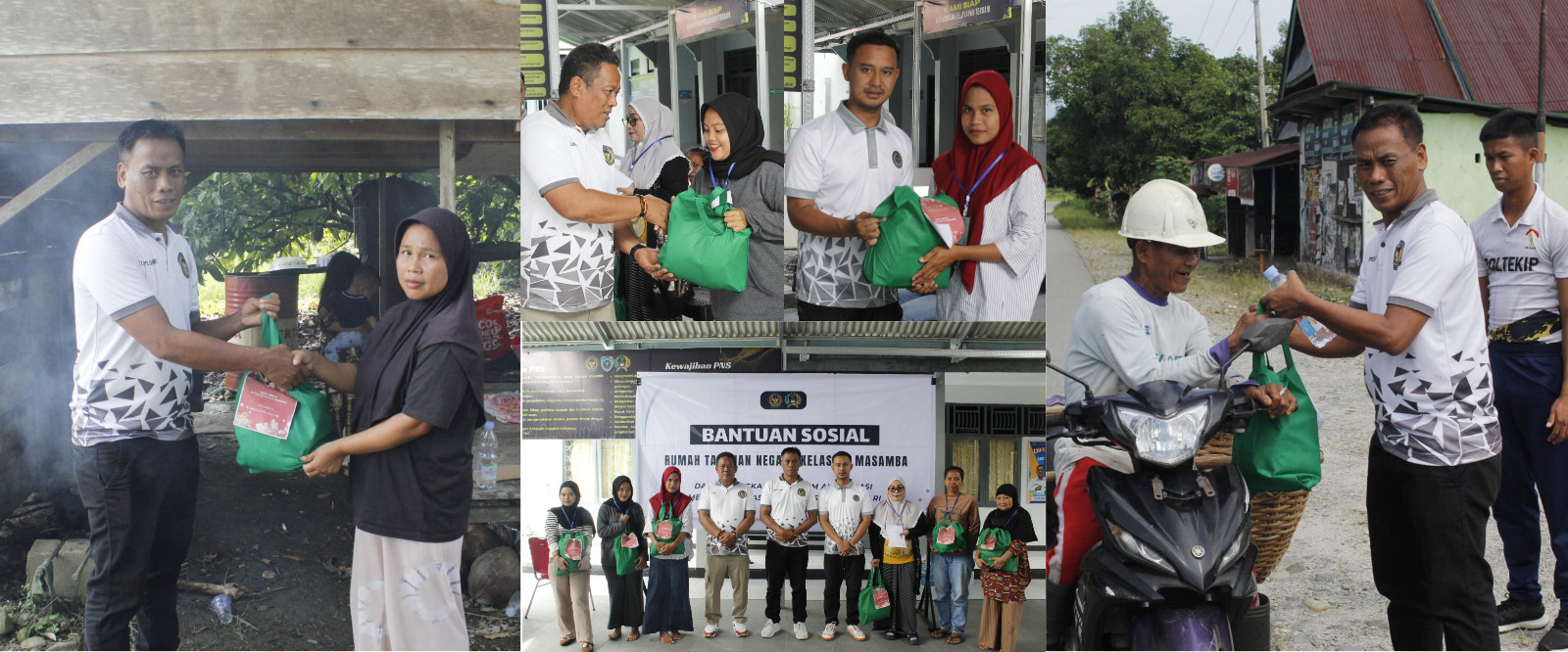 Suasana bakti sosial Rutan Kelas IIB Masamba, Sabtu (27/12/2025). Jajaran Rutan menyalurkan bantuan sosial kepada masyarakat sekitar dan keluarga WBP sebagai implementasi 13 Program Akselerasi Menteri Imigrasi dan Pemasyarakatan. (Kolase kegiatan Humas Rutan Masamba)