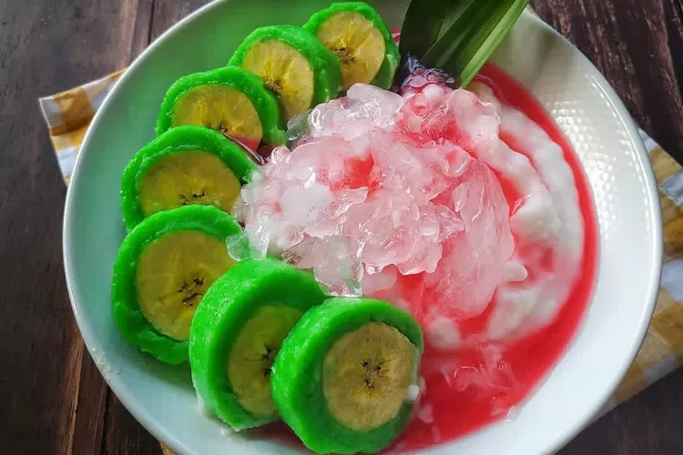Setelah puas menikmati hidangan berat, saatnya menyegarkan diri dengan Es Pisang Ijo. Pisang yang dibalut dengan adonan hijau yang lembut disiram dengan saus santan, sirup merah, dan es serut. Rasanya manis, segar, dan sangat cocok dinikmati di siang hari yang panas.