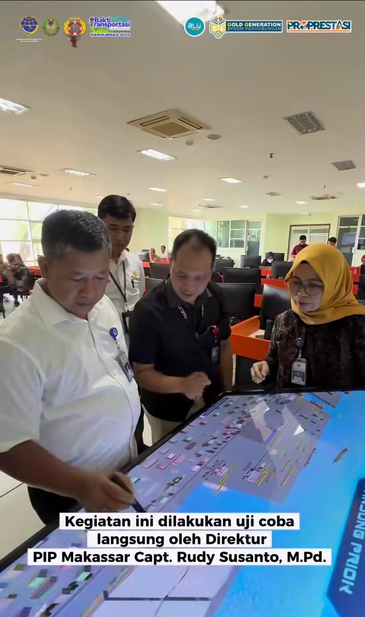 Direktur PIP Makassar, Capt. Rudy Susanto, M.Pd., turut melakukan uji coba langsung penggunaan simulator. Pelatihan ini menjadi langkah pemanfaatan teknologi pembelajaran modern berstandar internasional yang diharapkan dapat menunjang proses belajar mengajar bagi taruna-taruni Prodi KALK.