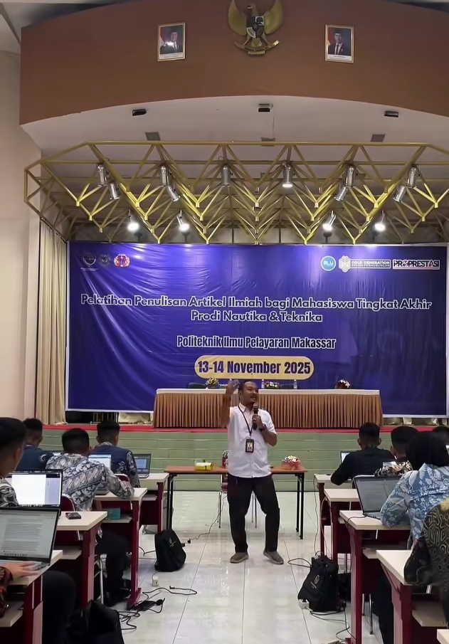 Kumbanews.com – Politeknik Ilmu Pelayaran (PIP) Makassar terus menggenjot kualitas akademik mahasiswa tingkat akhir Program Diploma IV dengan menggelar bimbingan teknis (bimtek) penulisan artikel ilmiah. Kegiatan ini menjadi upaya nyata kampus menyiapkan lulusan yang tidak hanya unggul dalam praktik kepelautan, tetapi juga memiliki kekuatan riset dan analisis yang mumpuni, Jumat (14/11/2025).