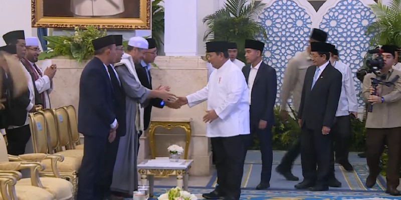 Setibanya di lokasi acara, Presiden Prabowo menyempatkan diri menyalami sejumlah ulama dan pejabat tinggi negara yang telah hadir lebih dahulu.