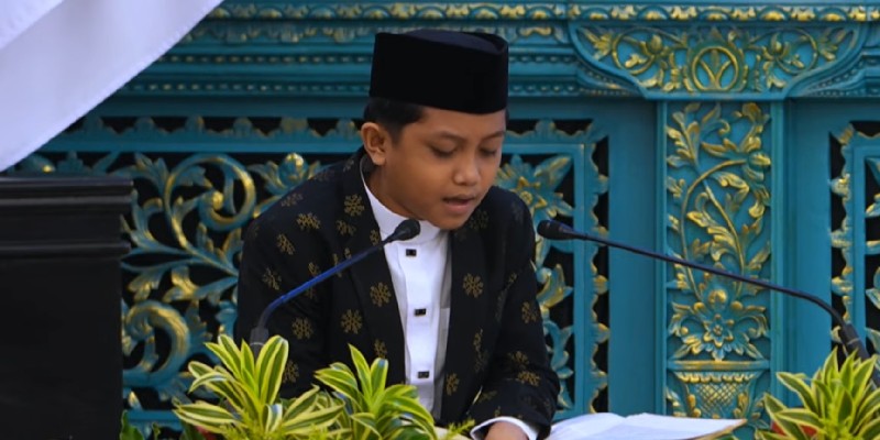 Qari cilik Muhammad Zian Fahrezi membacakan ayat suci Al-Qur’an dalam peringatan Nuzulul Quran di Istana Negara, Selasa (10/3/2026). (Foto: Istimewa)
