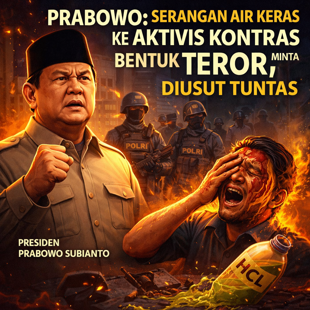 Kumbanews.com – Presiden Prabowo Subianto menyoroti kasus penyiraman air keras terhadap aktivis KontraS, Andrie Yunus. Ia menilai peristiwa tersebut sebagai bentuk teror yang harus diusut hingga tuntas.