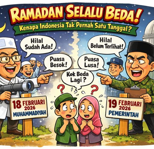Kumbanews.com – Penetapan awal Ramadan 1447 Hijriah kembali berbeda di Indonesia. Pimpinan Pusat (PP) Muhammadiyah menetapkan 1 Ramadan jatuh pada Rabu, 18 Februari 2026. Pemerintah melalui Kementerian Agama menetapkan awal puasa pada Kamis, 19 Februari 2026, setelah menggelar sidang isbat.