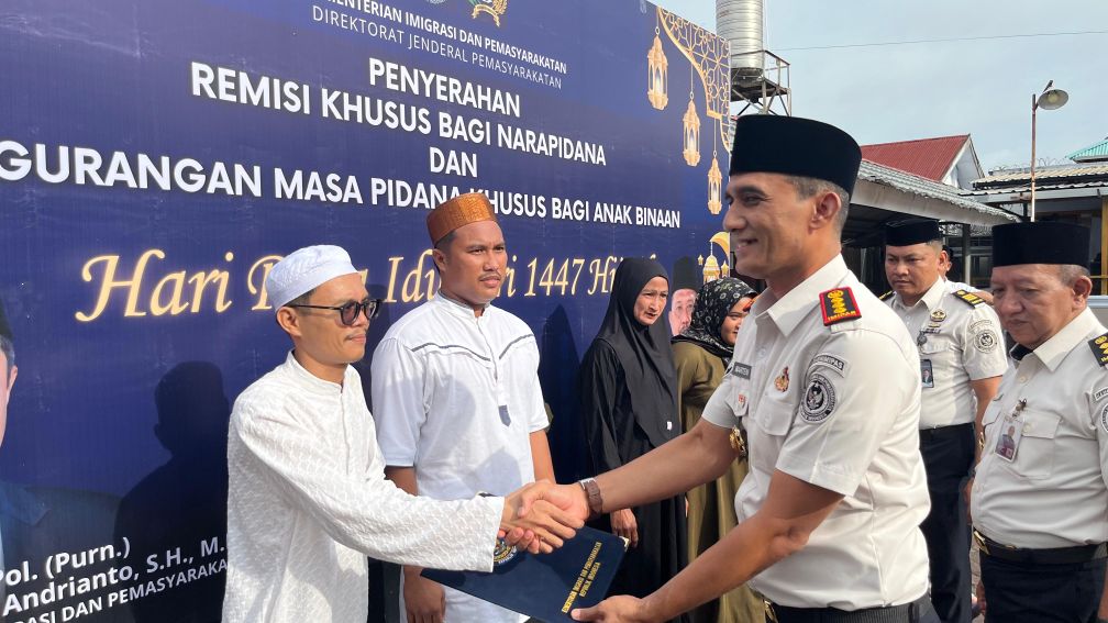 Sebanyak 320 warga binaan menerima Remisi Khusus Idul Fitri 2026. Rinciannya, 39 orang memperoleh remisi 15 hari, 178 orang mendapat remisi 1 bulan, 64 orang menerima remisi 1 bulan 15 hari, dan 39 orang memperoleh remisi 2 bulan.