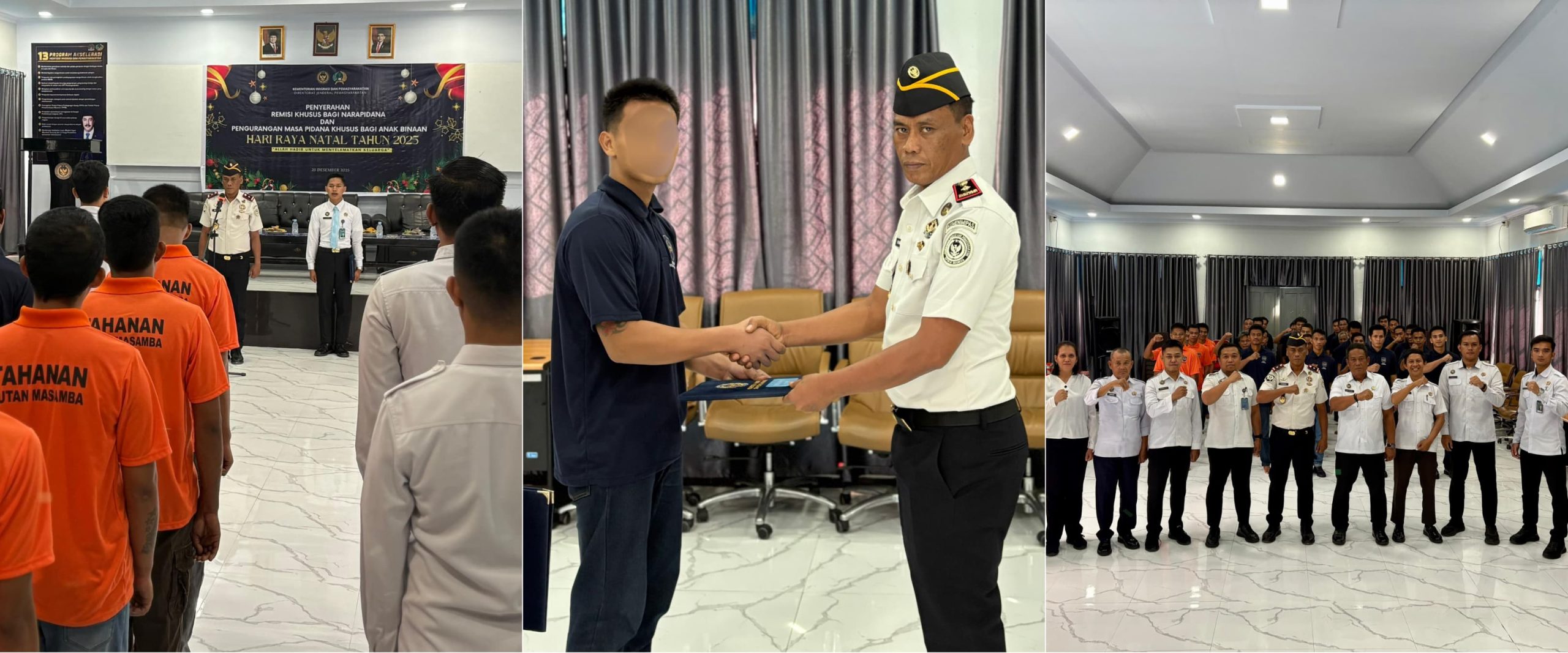 Kumbanews.com – Sebanyak 25 Warga Binaan Pemasyarakatan (WBP) di Rumah Tahanan Negara (Rutan) Kelas IIB Masamba menerima Remisi Khusus Hari Raya Natal 2025, Kamis (25/12). Pemberian remisi ini menjadi simbol harapan dan dorongan untuk perubahan positif di tengah perjalanan pembinaan mereka.