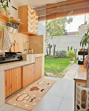Jendela besar atau ventilasi yang baik membuat dapur lebih terang, sehat, dan tidak terasa sumpek.