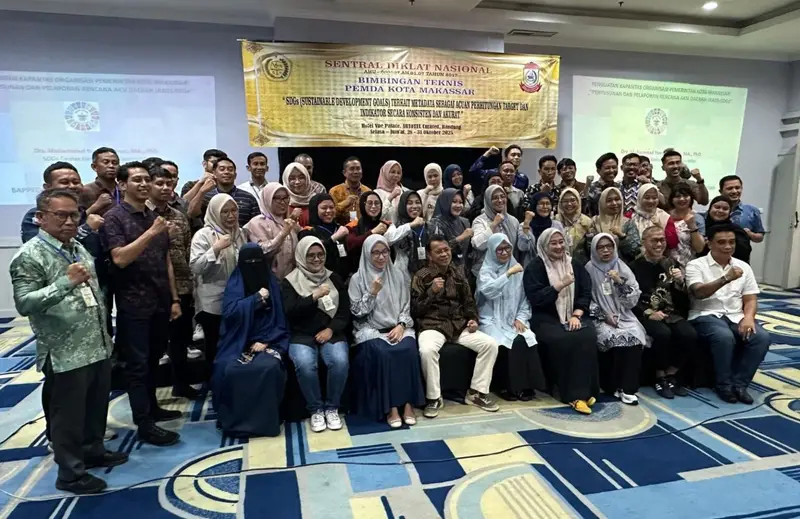 Bimtek yang berlangsung sejak 28-31 Oktober 2025 ini diselenggarakan oleh Pemerintah Kota Makassar bekerja sama dengan Sentral Diklat Nasional sebagai penyaji materi. Kegiatan ini bertujuan meningkatkan pemahaman pentingnya metadata dalam menghitung target dan indikator SDGs secara akurat dan konsisten.