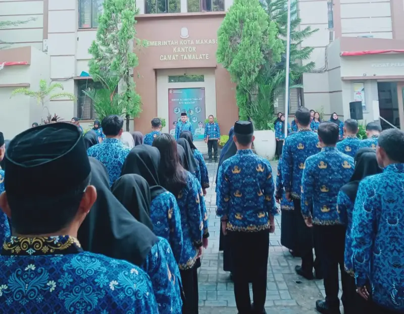 Kumbanews.com – Upacara Hari Kesadaran Nasional (HKN) di Kecamatan Tamalate berlangsung khidmat pada Senin (17/11/2025). Saat memimpin upacara, Sekcam Tamalate mengajak seluruh ASN dan P3K bekerja dengan hati, menjaga disiplin, dan saling mendukung demi pelayanan publik yang lebih baik.
