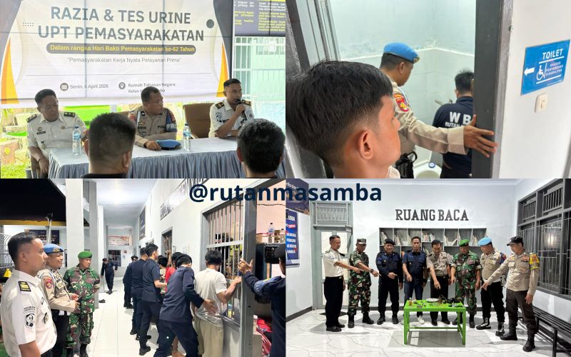 Kumbanews.com – Rutan Kelas IIB Masamba menggelar tes urine dan penggeledahan gabungan blok hunian dalam rangka memperingati Hari Bakti Pemasyarakatan (HBP) ke-62 Tahun 2026, Senin (6/4/2026).