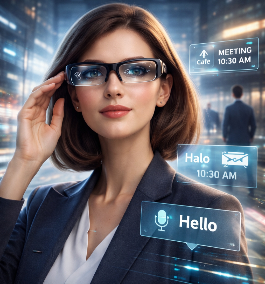 Perusahaan teknologi global seperti Meta dan Apple terus mengembangkan kacamata pintar yang mampu menampilkan notifikasi, navigasi, hingga terjemahan bahasa secara real-time langsung di lensa.