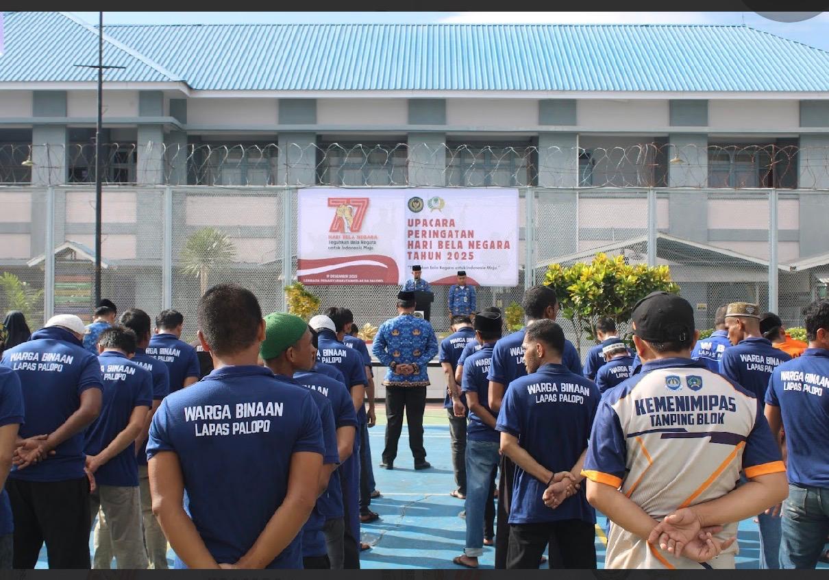 Kumbanews.com – Lembaga Pemasyarakatan (Lapas) Kelas IIA Palopo menggelar Upacara Peringatan Hari Bela Negara ke-77 Tahun 2025, Jumat (19/12/2025), di Lapangan Lapas Palopo. Kegiatan ini berlangsung khidmat dan tertib, diikuti oleh pejabat struktural, pegawai JFT/JFU, serta peserta magang.