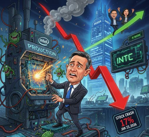 Kumbanews.com – Saham Intel kembali tertekan tajam setelah manajemen merilis proyeksi pendapatan yang meleset dari ekspektasi pasar. Pada perdagangan Jumat, 23 Januari 2026, saham raksasa semikonduktor asal Amerika Serikat itu anjlok hingga 17 persen.