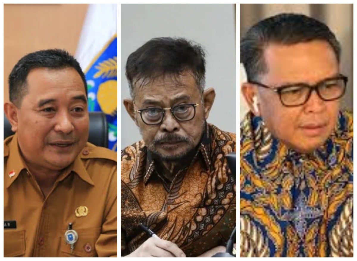 Kolase foto Syahrul Yasin Limpo, Nurdin Abdullah, dan Bahtiar Baharuddin, tiga tokoh yang pernah memimpin Sulawesi Selatan dan tersandung kasus hukum pada periode berbeda.