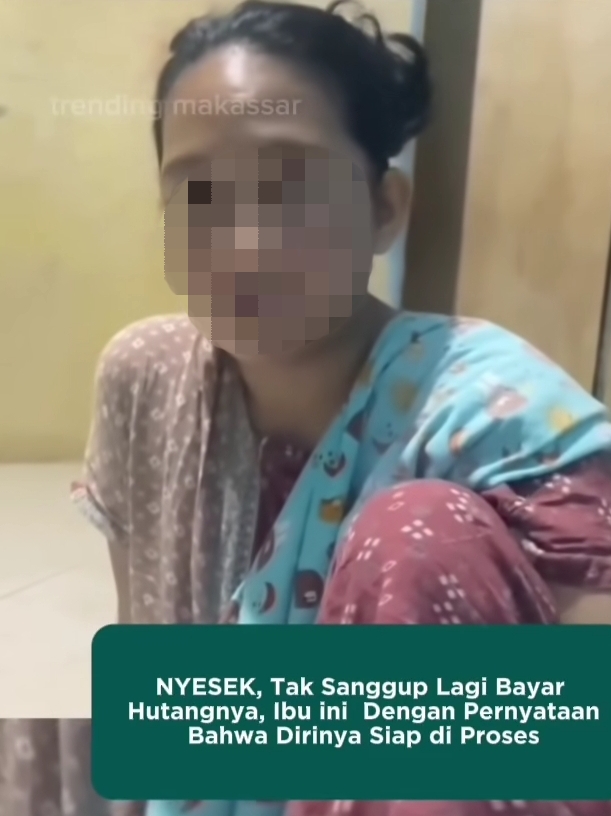Wanita tersebut kemudian menganggukkan kepala dan menjawab singkat, “Iya,” dengan raut wajah sedih. Saat diminta berbicara lebih keras, ia kembali menyampaikan, “Saya siap,” dan mengakui tidak sanggup membayar utangnya.